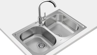 Мойка оснащена двумя просторными чашами размерами 340x400 мм каждая, обеспечивая удобство при мытье посуды и других кухонных принадлежностей. Глубина каждой чаши составляет 170 мм - это позволяет легко омывать и моющие большие кастрюли или противни.